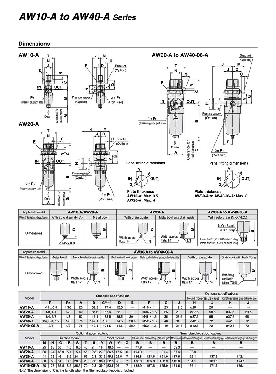 The transparent bowl guard allows observation of the drain status inside the filter bowl and residual oil (if matched with a lubricator) from any angle, making maintenance more convenient.
