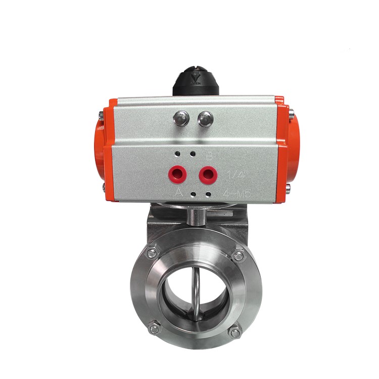 The Food Grade Pneumatic Actuated Butterfly Valve is a specialized fluid control device designed exclusively for the food, beverage, pharmaceutical and cosmetic industries, integrating food safety compliance, pneumatic automation and reliable fluid control. It uses a disc-shaped butterfly plate as the core control component, with compressed air as the power source to drive the pneumatic actuator, and realizes on-off or throttling control of fluid media through 90-degree rotation of the butterfly plate.