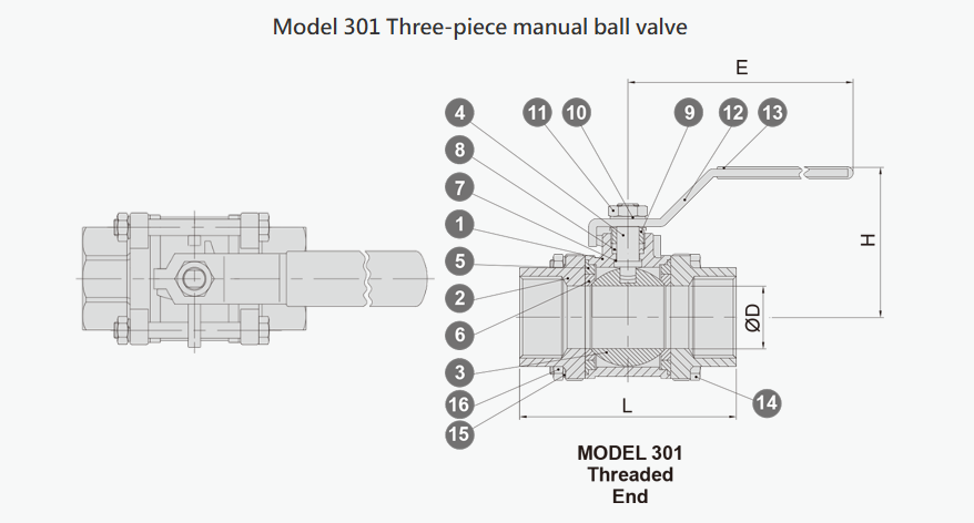 ● 3-piece ball valve design features of easy to repair and long lifespan
